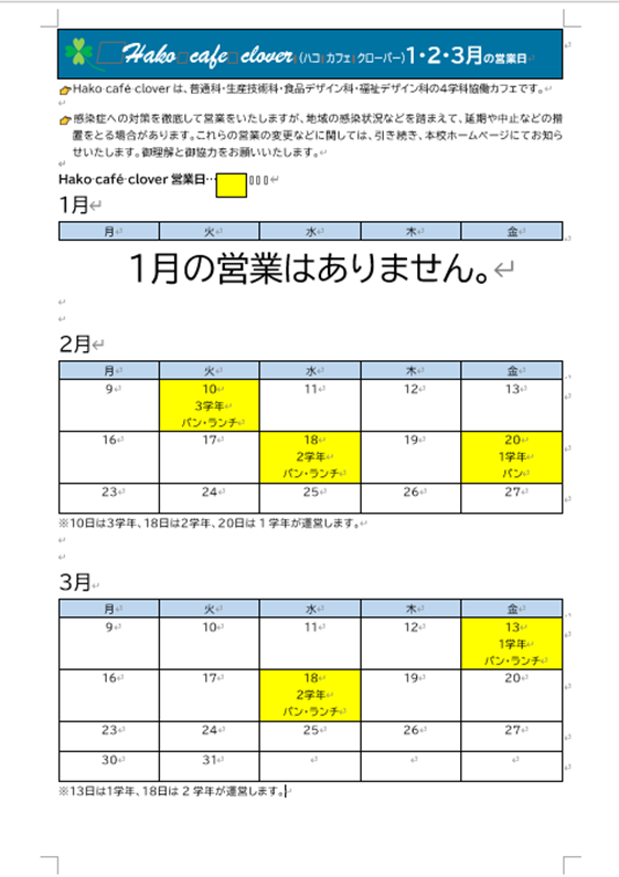 ☆1~3月営業予定カレンダーを更新しました。