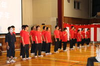 引き続き、一学期の始業式があり、春休み中に事故などの報告もなく、新2・3年生52名が勢揃いして、久し振りに校歌を歌い、近藤校長の話を聞いて、新年度をスタートさせました。