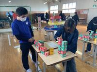 2学年は、昨年の経験を生かして、2時間で10本以上のワックスキャンドルを作りたいと目標を持って取り組む生徒が数名いました。多くの生徒が、たくさんのキャンドルを作ることを意識していたので、時間が過ぎるのがあっという間でした。結果は、全員で225本のワックスキャンドルを製作することができました。事後学習では、社会貢献活動に参加できて充実感があると答えていた生徒がたくさんいました。