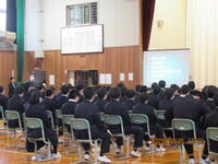 お招き,命の大切さを学ぶことを目的に、実際に起こった犯罪の例や、SNS被害の怖さなどを講演していただきました。