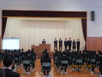 12月25日(木)5校時、本校体育館で全校集会と終業式が行われました。生徒会主催の全校集会では、生徒会執行部と各委員会から報告や連絡が伝えられ、各部活動からは2学期の活動の様子が報告されました。終業式は2学期の締め括りの儀式的行事として開催され、校歌斉唱の後、近藤校長先生から〔いつでもHappy Smile〕と題して46枚の写真とともにお話があり、食品デザイン科の生徒3名による作文発表もありました。また、2学期に行われた陸上競技とバスケットボール競技それぞれの障がい者スポーツ大会道南地区、全道大会、全国大会の表彰があり、代表生徒の3年生2名が校長先生からメダルを首から掛けてもらい、生徒・教職員全員から祝福の拍手を受けました。